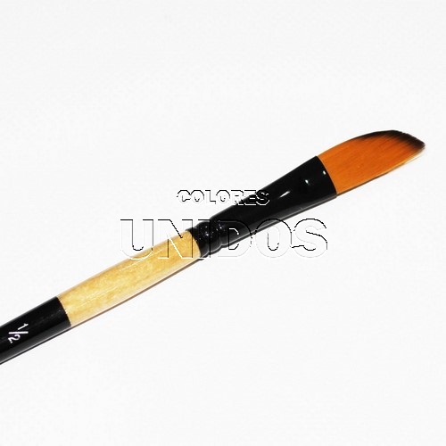 Pincel en forma de daga A300 con pelo sintético en dos colores, con una abrazadera de color negro y un mango corto lacado en dos colores.