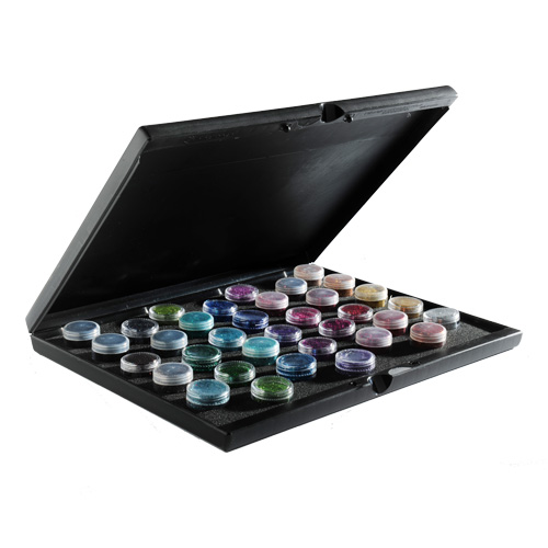 Maletín Negro para 35 unidades de frascos de purpurina de 5 ml. (VACIO).
